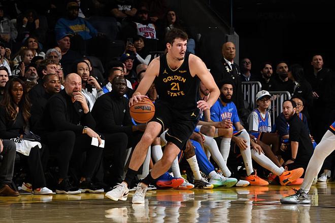 本场比赛中,勇士的先发中锋昆滕-波斯特(Quinten Post)的表现令人大跌眼镜。波斯特全场出场22分47秒,投篮10中4,三分线外6中1,罚球2中2,得到了11分3篮板2助攻1抢断的数据,还有1次失误和5次犯规,正负值为-21。波斯特在进攻端效率不佳,还是没有办法发挥出自己在外线投篮方面的能力,他也缺乏其他稳定的进攻手段,他在进攻端的效果当然是很不理想的。除此之外,波斯特在防守端的表现同样是无法令人感到满意的,他在篮板保护方面的问题非常明显,他在内线防守方面也显得力不从心。至少在本场比赛中,波斯特在攻防两端的表现都是灾难级别的,完全没有达到大家的预期,可以说是被雷霆各种打爆了。