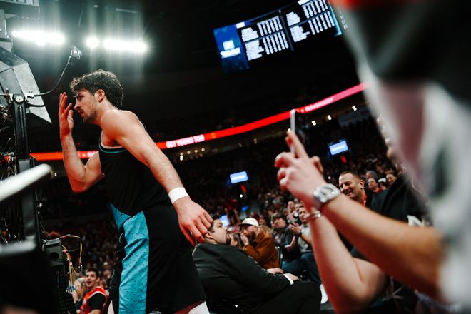 开场后双方交替领跑,卡马拉和夏普各中三分,他们率队连得8分,开拓者队拉开比分。米哈伊柳克三分还击,两队各得几分,勒夫和西索科轮流命中三分,首节还有3分钟时开拓者队以27-17领先10分。马尔卡宁和菲利波维斯基分别投中三分缩小差距,夏普压哨三分命中,开拓者队以36-26领先10分结束首节。