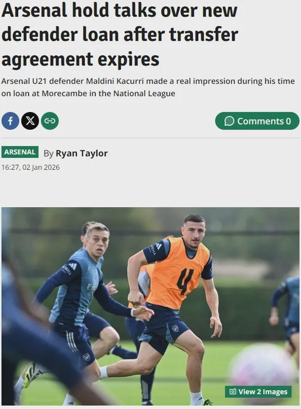 伦敦足球和镜报记者RT消息,莫克姆正和阿森纳谈判延长卡库里的租期。