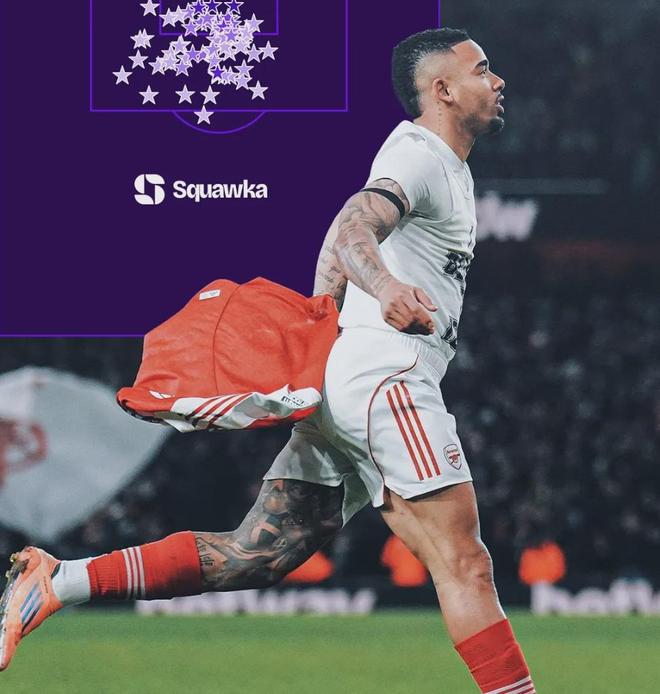 Squawka统计,对维拉一战的进球是热苏斯在大禁区外打进的首粒英超进球,也是他的第77个英超进球。