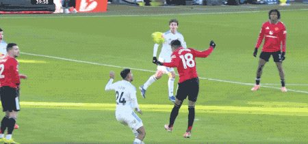第40分钟,还是卢克肖的角球,卡塞米罗头球摆渡,约罗近在咫尺的头球攻门,居然被佩里扑了出来。