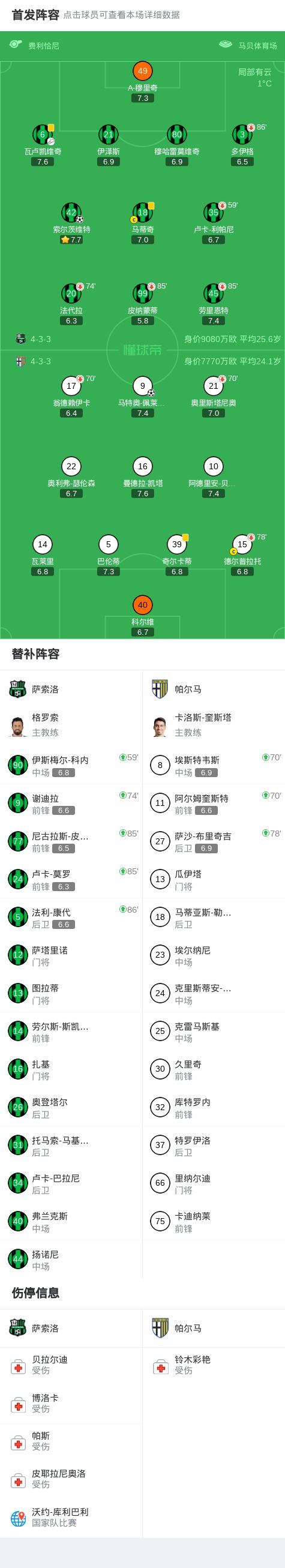 萨索洛1-1帕尔马,索尔茨维特首开记录,马特奥-佩莱格里诺扳平