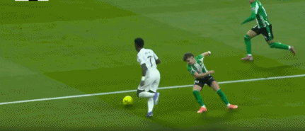 第6分钟,维尼修斯禁区内倒地,裁判没有表示