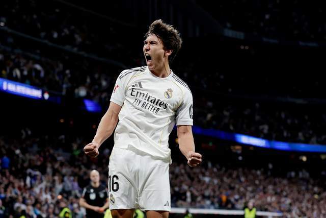 作为世俱杯金靴得主,贡萨洛-加西亚终于抓住机会证明自己的能力。第93分钟,巴尔韦德右路传中,弗兰-加西亚抢点破门,比分锁定在5-1!皇马迎来2026年开门红,报了上次相遇1-2落败的一箭之仇,同时实现各项赛事4连胜,继续将分差维持在4分。